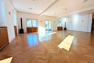 Herzstück des Hauses ist ein großzügiger Seminarraum mit rund 90 Quadratmetern, ergänzt durch einen weiteren Gruppenraum mit etwa 40 Quadratmetern. Beide Räume sind hell, freundlich und vielseitig nutzbar, geeignet für Gruppenprozesse, Aufstellungsarbeit, Meditation, Bewegung oder intensive Trainingssequenzen. Die Raumstruktur ermöglicht sowohl Arbeiten im Plenum als auch parallele Kleingruppenformate.