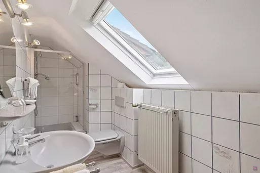 Ein Teil der Zimmer verfügt über ein eigenes Bad, weitere nutzen gepflegte Gemeinschaftsbäder auf den Etagen. Die Ausstattung ist bewusst schlicht und stimmig gehalten, mit natürlichen Materialien und einer klaren Atmosphäre, die Rückzug und Erholung unterstützt.