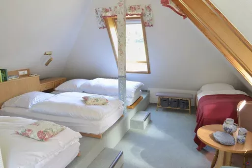 Das Haus verfügt über verschiedene Gästezimmer mit insgesamt 18 Gästebetten: Einzelzimmer, Doppelzimmer mit Doppel- und Einzelbetten, Drei- und Vierbettzimmer.