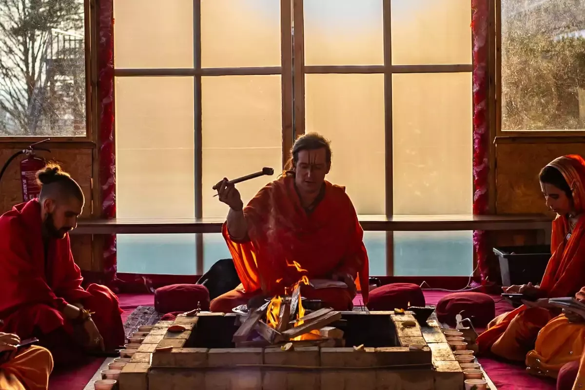 -) Bhajan Café: Besuche unser Bhajan Café für eine entspannte Atmosphäre und köstliche vegane Speisen und Getränke.