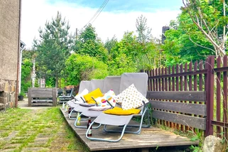 Im Haus gibt es zwei Wohnungen mit je 2 Zimmern, Küche und Bad, einen Anbau mit Sitzmöglichkeiten, eine Sauna.