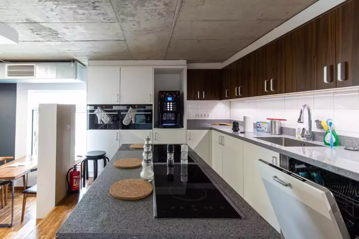 Die Gäste teilen sich einen großzügigen Gemeinschaftsbereich, der eine gesellige und gemeinschaftliche Atmosphäre fördert. Es gibt auch ein gemeinsames Badezimmer, das mit allen notwendigen Einrichtungen ausgestattet ist.