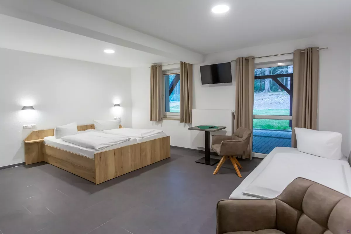 | Entfernungen: | Hallenbad (0,1 km), Freibad (5,0 km), Skilift (2,0 km), Loipe (0,1 km), Bahnhof (5,0 km) |