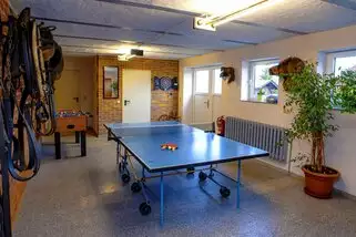 Sehr schönes Ferienhaus mit viel Platz. Wir sind mit einer Gruppe befreundeter Familien hingefahren. Jeder hatte seine Wohnung/ Zimmer für den privaten Rückzug und am Abend traf man sich in einer der zwei großen Gemeinschaftsräume. Die Kinder konnten sich auf dem großen Außengelände bei Pferd,Hase, Kuh und Katze austoben oder den Tischtennis-/Dartraum nutzen. Alles sehr sauber und gemütlich eingerichtet. Sehr nette Gastgeber. Für große Gruppen oder Familien bestens geeignet.