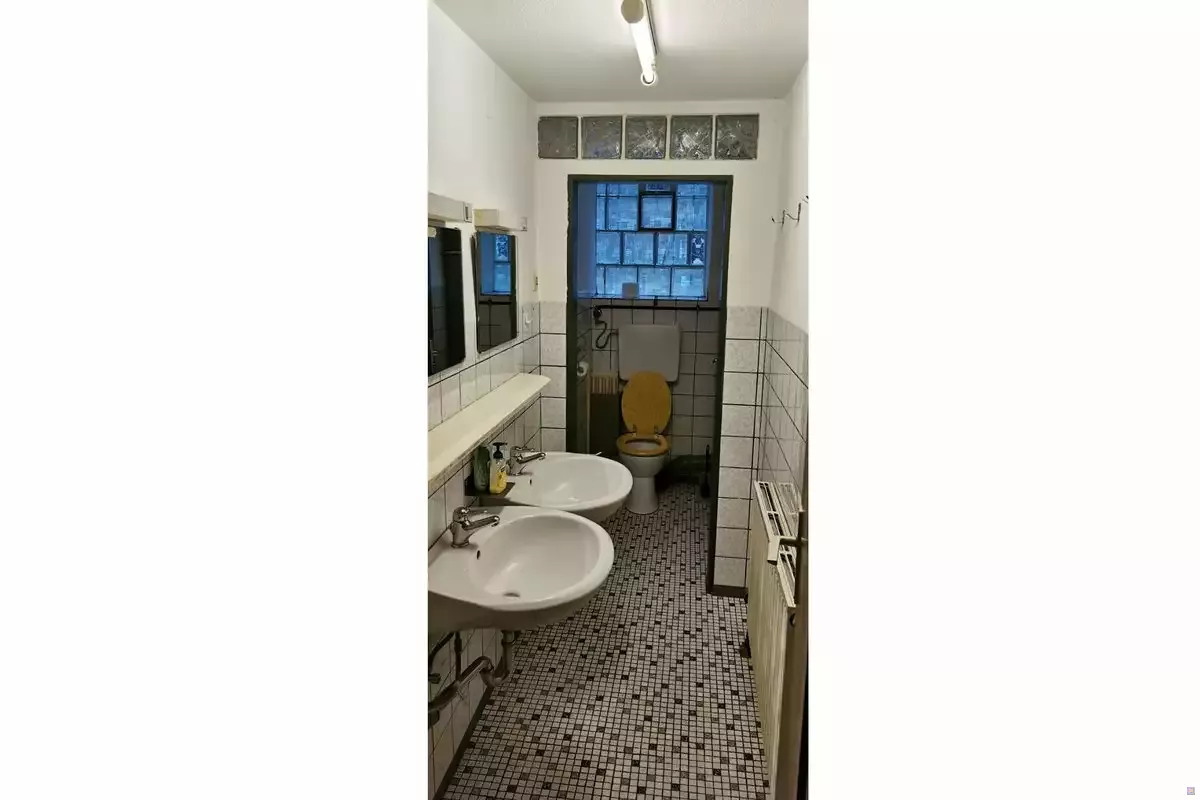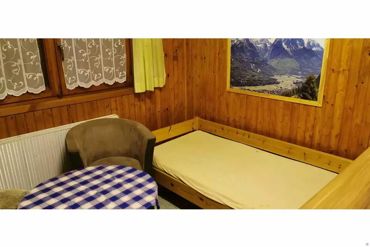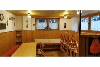 Der Aufenthaltsraum ca 20 m² ist für 18 Personen ausreichend, eine Küche mit ca 14 m² bietet alles was man zum Kochen braucht. 3 Toiletten, 4 Waschplätze und 1 Dusche sind vorhanden. Zu den 5 Zimmern und 1 WC gelangen Sie über eine Wendeltreppe.