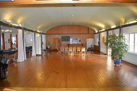 Tagungshaus Himbergen/Göhrde. Unser großer Saal besticht durch die original erhaltene Tunneldecke und die dadurch tolle Akustik.