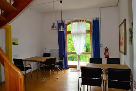 Haus mit Atmosphäre. Wir hatten viel Platz für die ganze Gruppe im Jugendstilsaal. Dort konnte unsere Gruppe ein Seminar abhalten und wir haben uns dort sehr wohl gefühlt Die Selbstversorgerküche läßt keine Wünsche offen, wir haben dort immer mit 6 Personen gleichzeitig rumgewuselt. Wir sind sehr gerne dort gewesen. Bis zum nächsten Mal.