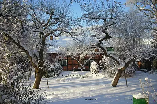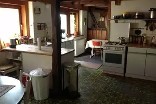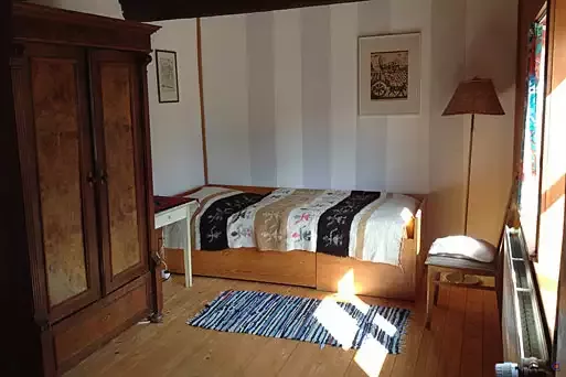 Das große Haus mit 19 Betten: ein Einzelzimmer, drei Doppelzimmer, vier 3-Bett-Zimmer; dazu die ausgebaute Scheune als Tagungsraum, 1 Küche und eine Teeküche.