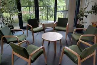 Auf Anfrage stellen wir unseren Gästen weitere Geräte oder Ausrüstung zur Verfügung. (E-Piano, kleine Mikrofonanlage) Für Pausen oder Gespräche nach dem Programm können mehrere Sitzecken im Gebäude genutzt werden.