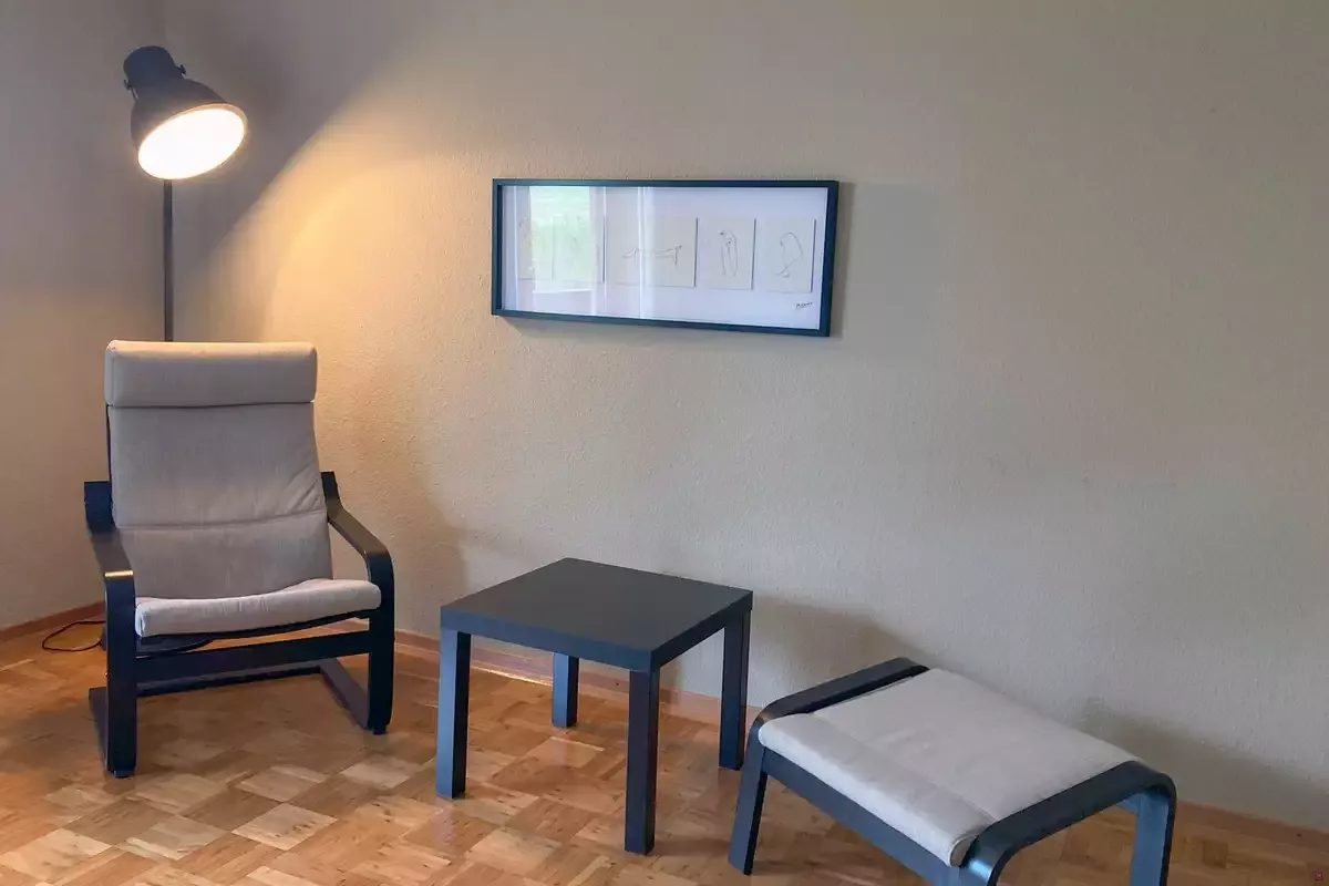 Sitzecke, großformatiger Spiegel an der Wand (z.B. Yogakurse, ...), Fernseher/Bildschirm, Sitzmöglichkeiten, Balkonzugang*
