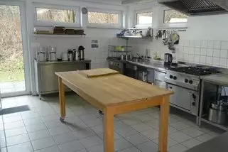 Die meisten Schlafräume befinden sich im ersten Stock. Dort finden sich zwei 6-Bett, vier 3-Bett und ein 2-Bett-Zimmer. Zwei weitere 2-Bett-Zimmer befinden sich im Erdgeschoss. Die Küche ist von ihrer Größe und Ausstattung so ausgelegt, dass man hier für 30 Personen kochen kann. Gekocht wird auf einem Gasherd, während der Backofen elektrisch betrieben wird. Für den Abwasch steht eine Geschirrspülmaschine zur Verfügung. Weiterhin sind Kühlschränke und ein Tiefkühlschrank sowie zwei Toaster, Kaffeemaschinen und ein Wasserkocher vorhanden.
