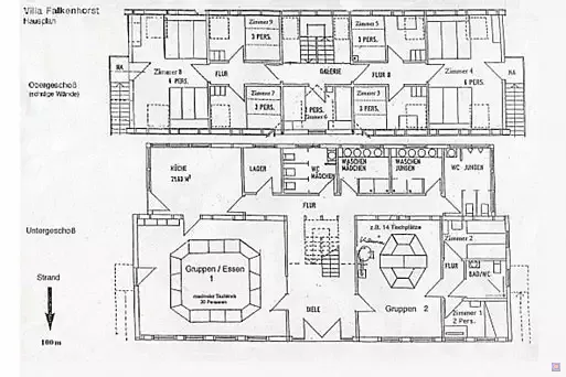 Die Unterkunft ist teilweise behindertengerecht: Untergeschoss mit 2 Schlafräumen, Küche, Gruppenräumen u. einem Sanitärraum