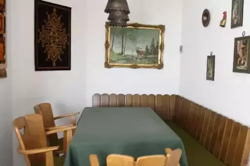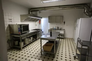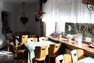 Neben den Schlafräumen bietet das Haus mehrere Gemeinschafts- und Gruppenräume, die viel Platz für Begegnung, Austausch oder Freizeitgestaltung schaffen. Der große, lichtdurchflutete Speise- und Aufenthaltsraum mit Blick ins Grüne lädt zu gemeinsamen Mahlzeiten und geselligem Beisammensein ein. Direkt angeschlossen ist die vollständig ausgestattete Selbstversorgerküche, die mit Industrie-Spülmaschine, Herd, Backofen, Kühl- und Gefrierschränken sowie reichlich Koch- und Essgeschirr alles bereithält, was eine Gruppe für die Eigenversorgung benötigt.