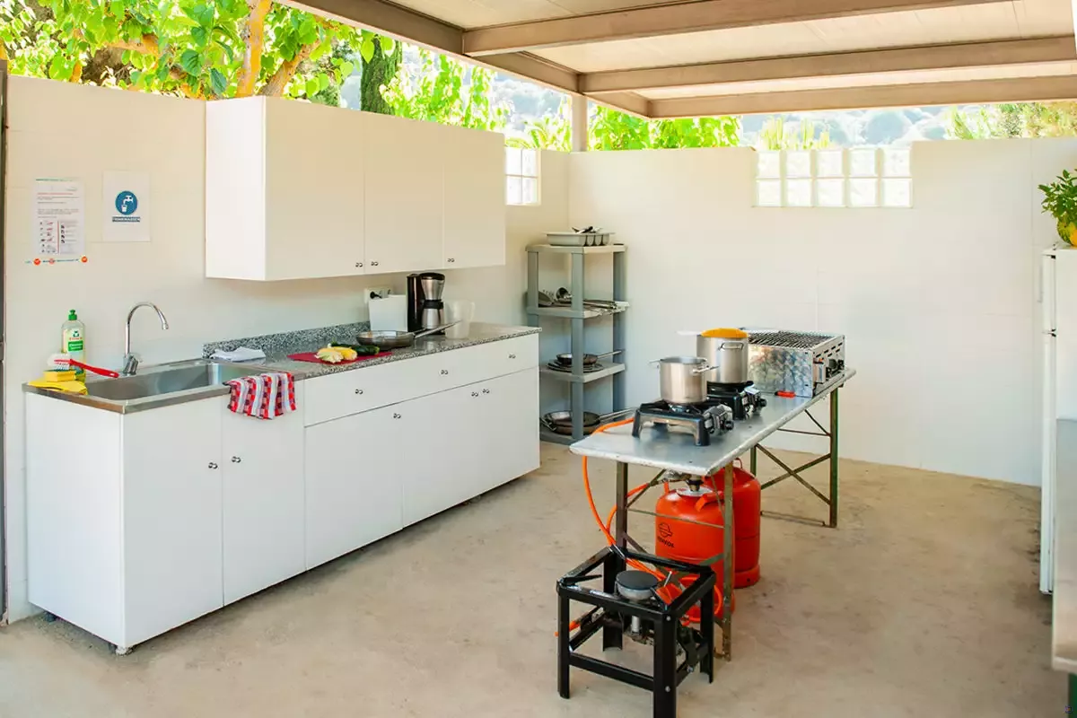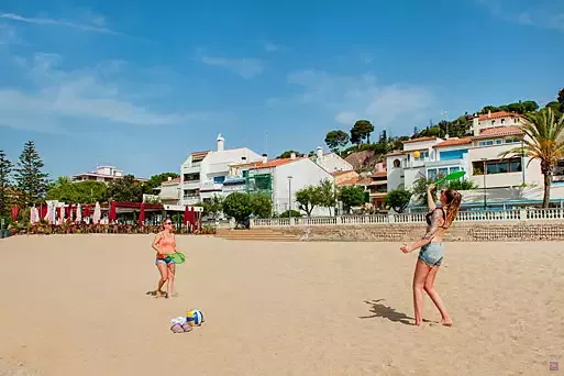 Das Camp liegt oberhalb des kleinen, beschaulichen Ort Caldetes an der Costa Brava. Im Ort laden Restaurants, Cafés und kleine Geschäften zum Flanieren ein. Der weitläufige Sandstrand liegt etwa 20 Gehminuten vom Camp entfernt. Hier treffen sich junge Menschen zum Baden, Sport treiben und Faulenzen. Obwohl Caldetas ein beliebtes Ziel für Jugendreisen ist, findet man hier keine überfüllten Strände und Massentourismus. Ein Platz für ein Erfrischungsgetränk an einer der Strandbars ist immer frei.
