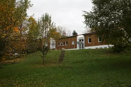 Im Haus gibt es einen Gruppenraum für 30 Personen (33 qm) und einen großen Tagesraum für ca. 60 Personen (80 qm), der durch eine Trennwand in zwei Gruppenräume geteilt werden kann.