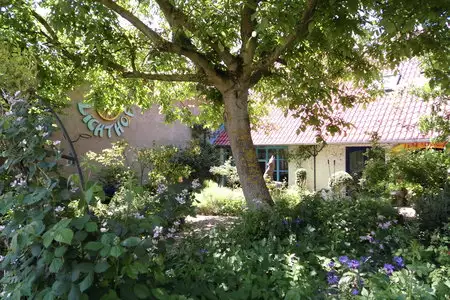 Jeder Besucher kann Innenhof & Gartenpark (mit Lagerfeuerstelle & Hängematten, Schaukel) nutzen. In deutsch-nepalesischem Familienbetrieb. Eurasische Küche: Selbstgemachtes aus dem Biogarten & Speisen aus Asien.