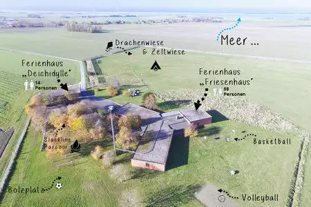 Unser "Friesenhaus" eignet sich perfekt für große Klassen- und Gruppenreisen von bis zu 58 Personen. Unsere Gäste erwartet ein liebevoll eingerichtetes Haus, mit großzügigen Gemeinschafts- und Aufenthaltsräumen, zwei komplett ausgestatteten Großküchen und einem Schlaftrakt mit gemütlichen Zimmern.