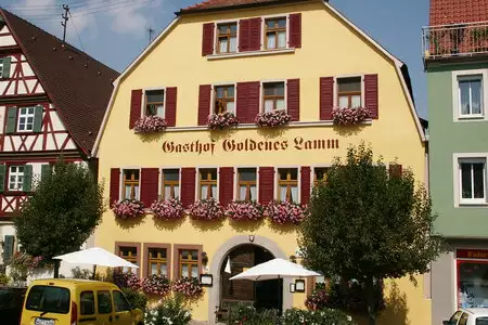 Das Goldene Lamm ist eine Gruppenunterkunft mit Selbstversorgung, die durch ihren historischen Charme und die zentrale Lage in der malerischen Kleinstadt Aub besticht. Im Dorfkern gelegen bietet der frühere Gasthof Raum für Begegnung und Zusammenkommen in urigem Ambiente. In wenigen Minuten erreicht man Wald und Felder für ausgedehnte Spaziergänge (z.B. zur Ruine Reichelsburg 1,5 km). Die Unterkunft bietet sich als Ausgangspunkt für Wanderungen, Radausflüge, Weinproben bei umliegenden Winzern und Ausflügen zu kulturellen Veranstaltungen (Freilichttheater, Museen, Hofgarten Residenz Würzburg). Sehenswerte Städte liegen in der Nähe wie Würzburg (Barockschloss, Marienfestung, Bürgerspitalkeller, 35 km), Rothenburg ob der Tauber (Weihnachtsladen, Foltermuseum, 28 km), Bad Windsheim (Frankentherme, Freilandmuseum, 31 km), Bad Mergentheim (Deutschordensschloss, Wildpark, 29 km).