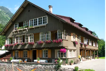 Das Mountainhostel ist ein 1921 erbautes Holzblockhaus mit herrlicher Lage. Wir befinden uns hier 7,5 km südlich von Oberstdorf am Ende des Trettachtals. Genauer in der Spielmannsau. Mit seinen fünf Häusern ist die Spielmannsau ein sehr beschaulicher kleiner Ort umgeben von purer Natur.