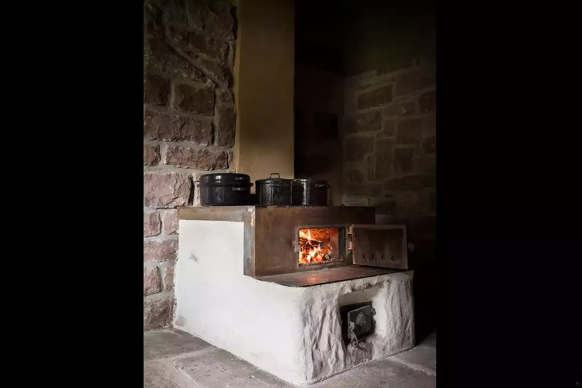 Der Schwarzwaldhof ist eine über Jahrhunderte gewachsene Bauform. Nichts daran ist zufällig, nichts bloße Zierde. Alles was wir vorfinden hat seinen Sinn. Betritt man zum ersten Mal das Halbdunkel der Stube, ist diese einfache Ordnung sofort fühlbar. Feuermachen in der Rauchküche oder Kochen auf dem gemauerten Herd wird zu einem einmaligen Erlebnis. Die große Stube mit Kachelofen bietet Platz für bis zu 15 Gäste. In der historischen Rauchküche können Sie auf dem Feuer kochen. Feuerholz und das passenden Kochzubehör stehen bereit. Alternativ steht Ihnen eine vollausgestattete moderne Küche mit elektrischem Herd, Backofen etc. zur Verfügung.