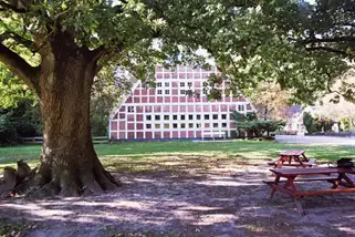 Idyllisch gelegen, kuschelt sich die Jugendherberge Wingst an den Waldrand.